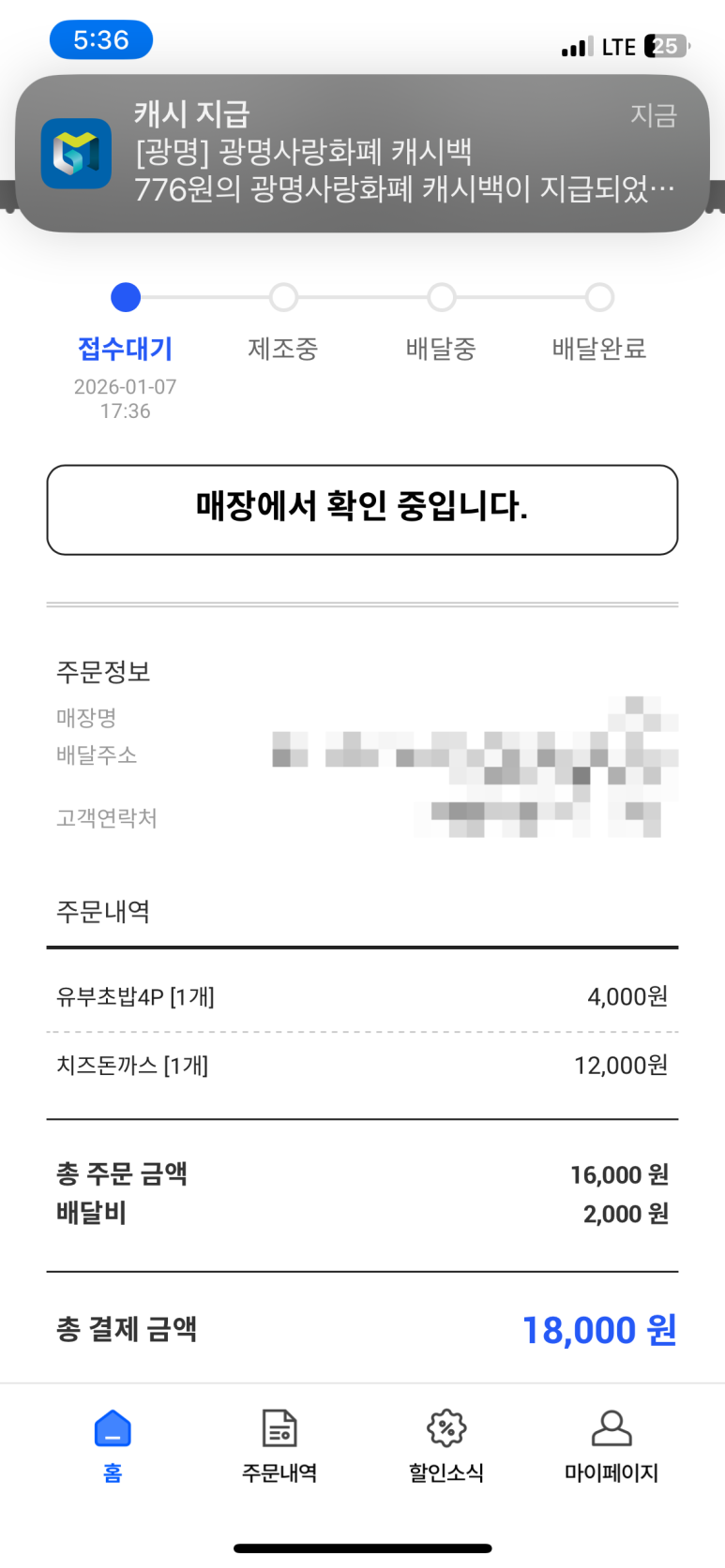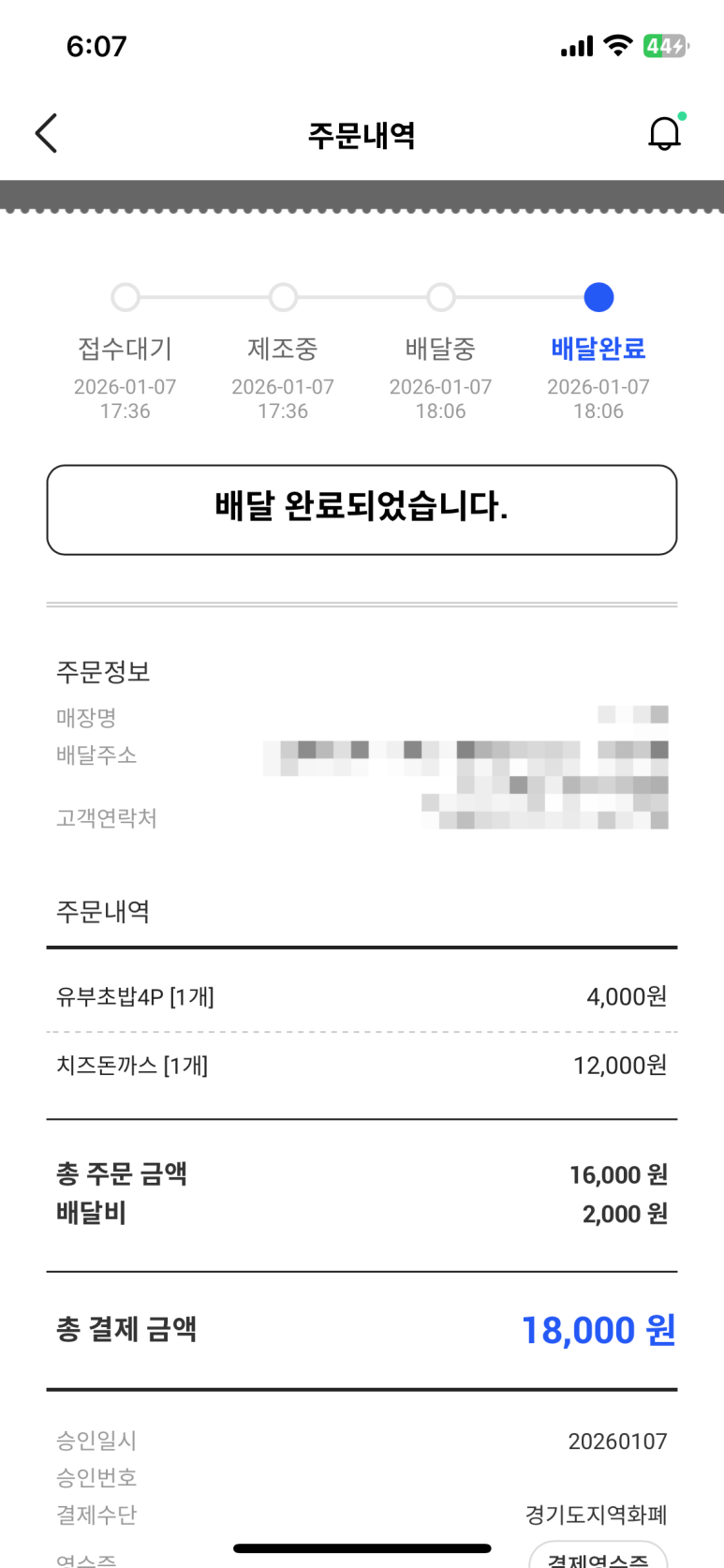 배달이 완료되었다.