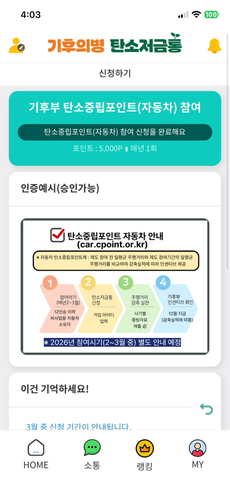 나는 탄소중립포인트 자동차 참여 내용을 신청했고