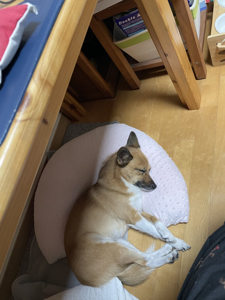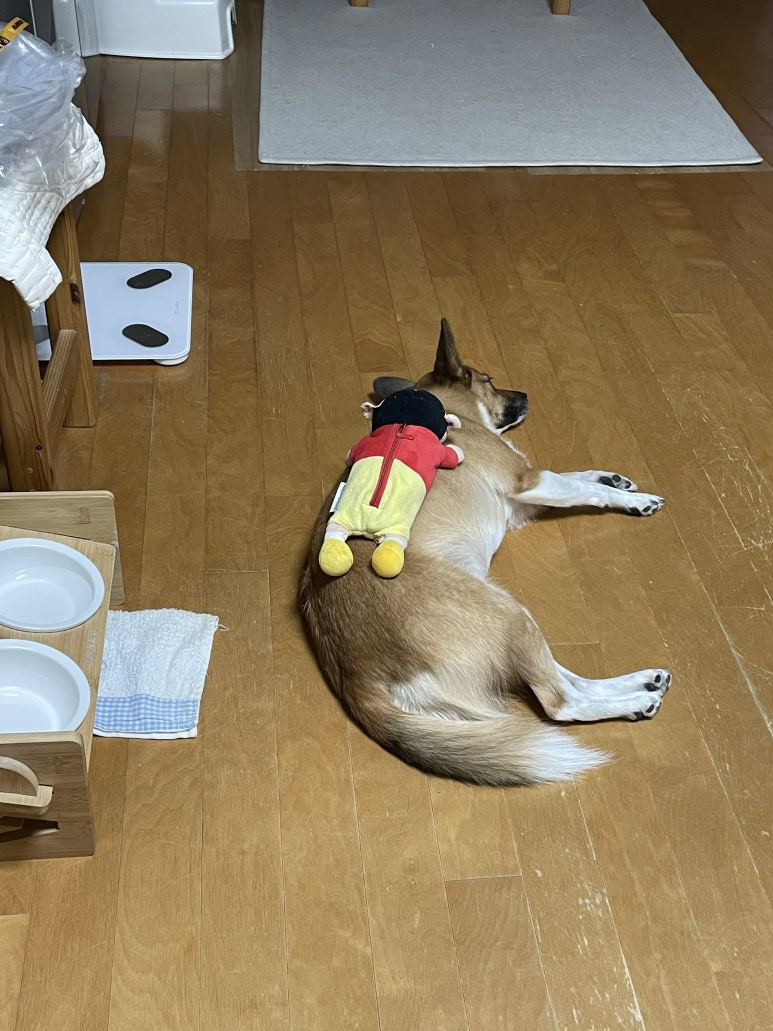 자리를 옮겨 눕길래 짱구 인형을 등어 올려 주었다.