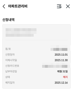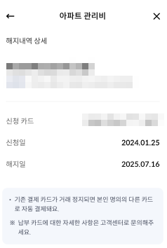 만약 해지가 안되어 있으면 전에 납부하던 카드로 자동결제가 될 수 있다는 것~