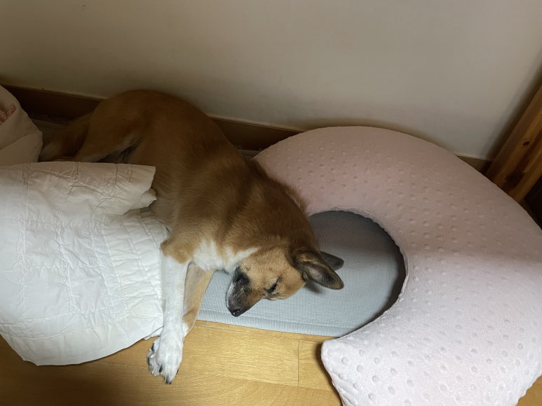 이렇게 잘 자던 은이에게 산책이라고 말하자